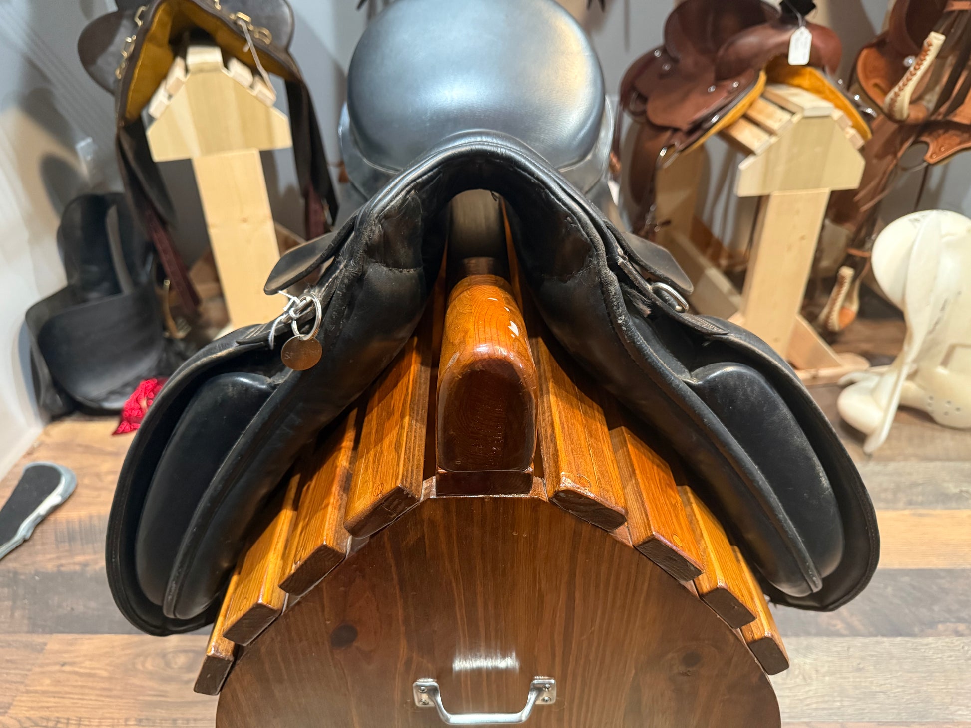 This is a beautifully kept but older Collegiate Dressage saddle. Very similar to the Classic but model is unknown. Regular billets and static tree. Wool flock has life in it and the knee blocks are soft & supple!