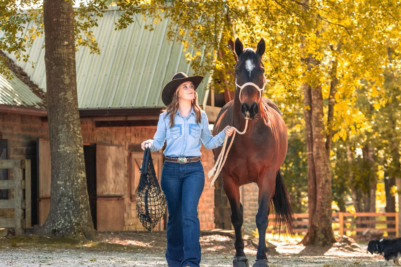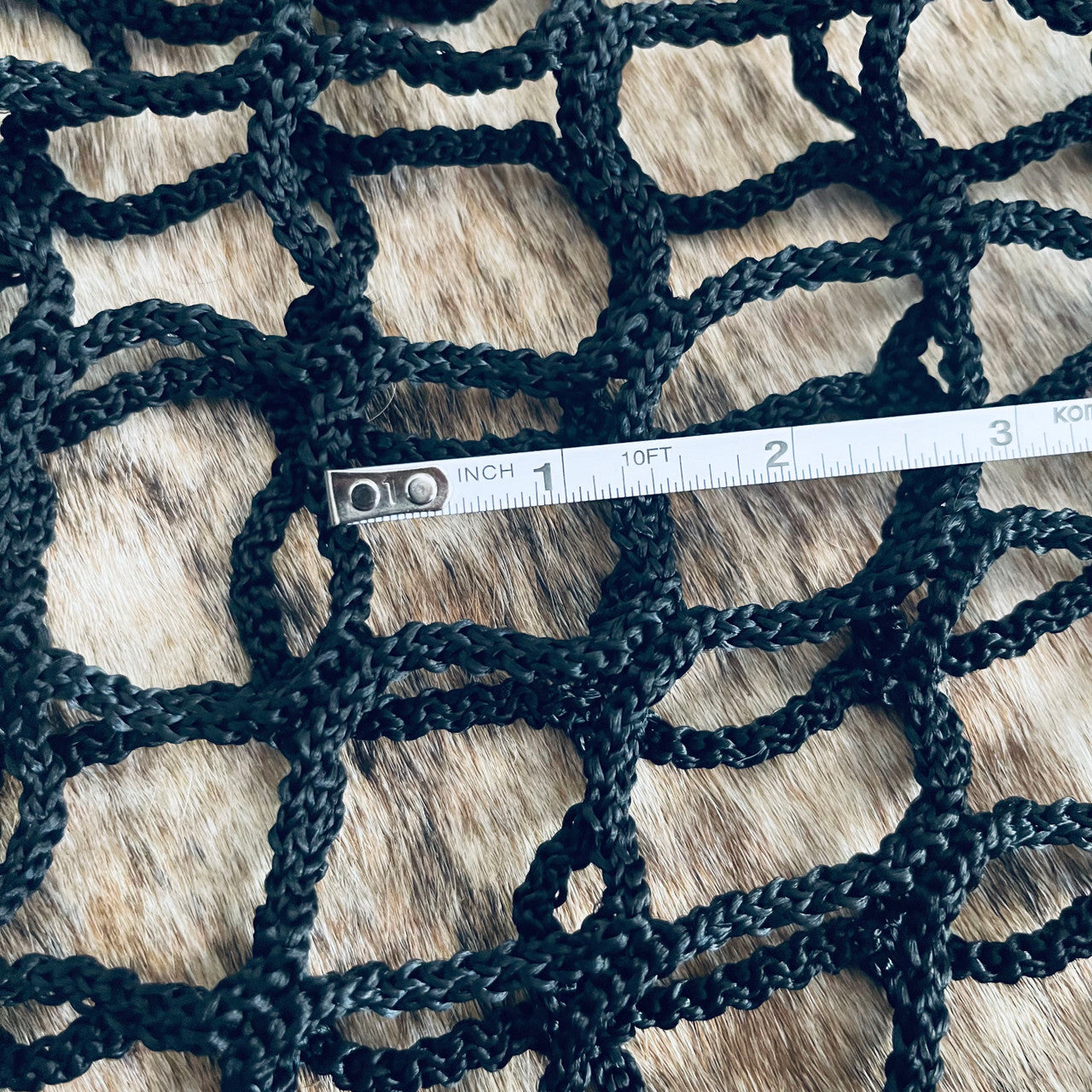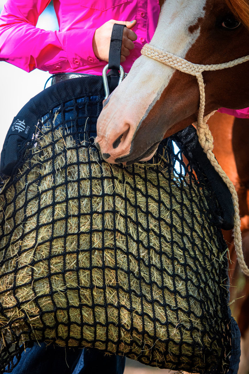 A much smaller Original. This net measures 19x23” and will hold 1-2 flakes of standard coastal Bermuda. The Hangover Mini is for those who’d like to more closely monitor their horses’ hay intake, hang their nets over the manger in the horse trailer or just simply like the use of a smaller net.